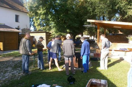 Tentokráte se opět všichni sešli v panském dvoře obecního úřadu Řepice, aby si užili celý zábavný den. Uživatelé Denního stacionáře celou akcí žili již několik týdnů předem – ve výtvarném ateliéru tvořili plakáty, pozvánky a pečlivě celou akci připravovali. Hned ráno vyrazila skupinka odvážných uživatelů do Řepice, aby se aktivně podíleli na přípravě – pomáhali napichovat prase na rožeň, sekat dřevo, přikládat do ohně, ale také hlavně točit vychlazené pivko.