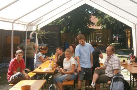 Za nimi po chvíli dorazila skupinka dalších uživatelů, kteří si z cesty do Řepice udělali turistickou procházku. Všichni se společně naobědvali – pochutnali si na chutné uzené šunce a s radostí si zapěli známé písně v doprovodu kytary. Dalším doprovodným programem pro všechny zúčastněné bylo i sportovní odpoledne, kterého se zúčastnili nejen uživatelé, ale i organizátoři celé akce. A pak již nezbývalo nic jiného, než čekat na hosty…