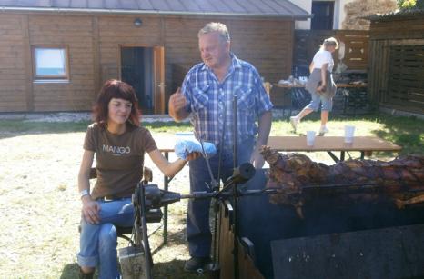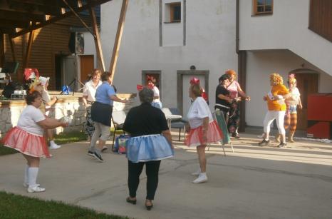 Prasátko se pěkně otáčelo, peklo se na ohni a do panského dvora začali přijíždět hosté – uživatelé, jejich rodiče a rodinní příslušníci, přátelé Denního stacionáře, ale i zaměstnanci MĚÚSS. Všichni se dobře bavili, popíjeli vychlazené pivko a zpívali. Nálada byla opravdu báječná a k této pohodě přispělo i vystoupení „Řepických babek“, které nejen všechny zúčastněné pobavilo, ale i roztancovalo.