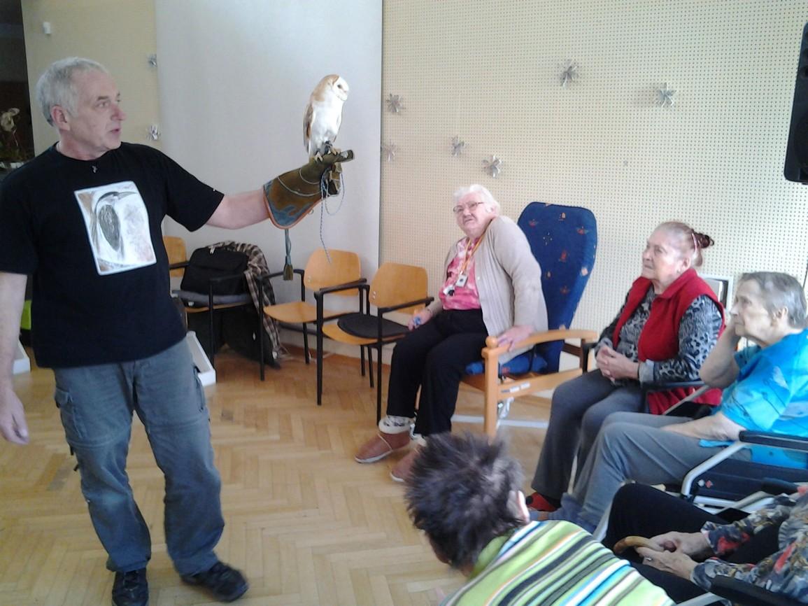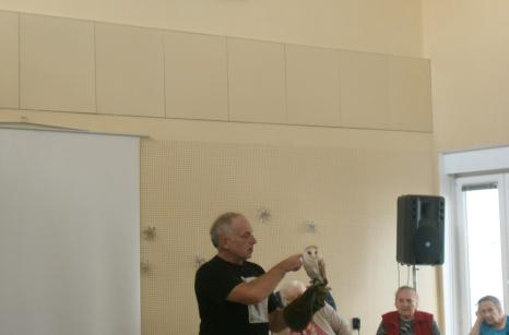 Pan František Kunc nás seznámil se svými zkušenostmi ze Záchranné stanice pro hendikepované živočichy Pavlov o.p.s., kde po určitý čas působil. Doma se stará o několik dravců - sýčka, sovu pálenou, rarocha velkého a sokola stěhovavého, které si přivezl sebou, aby si je obyvatelé mohli prohlédnout a pohladit.