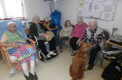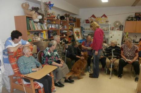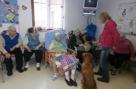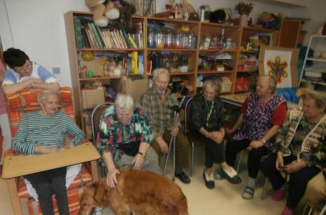 Již podruhé do našeho domova přišla paní Sokolová Lucie s fenkou zlatého retrívra Sárou. Uživatelé se na tuto milou návštěvu již těšili. Fenku Sáru si mohli nejen pohladit nebo učesat, ale také jí dát pamlsky, které má ráda.
