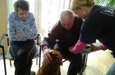Canisterapie Čt, 05/15/2014 - 15:30 Aktuality a akce, DZR Rybniční Pravidelná canisterapie v našem zařízení je velmi oblíbená, obyvatelé mají možnost se s fenkou Sárou pomazlit, pohladit jí, pročesat jí srst, odměnit ji granulemi.