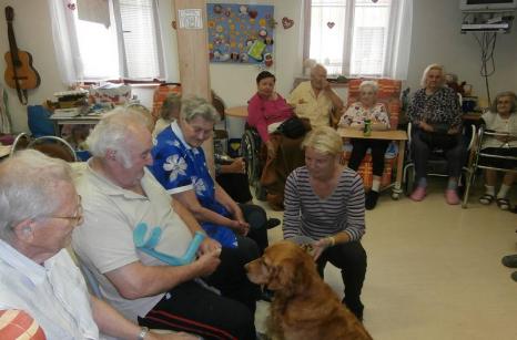 Canisterapie St, 08/13/2014 - 13:15 - St, 08/13/2014 - 14:30 Aktuality a akce, DS Lidická Návštěva fenky zlatého retrívra Sáry vždy všechny potěší. Klečková Martina - instruktorka sociální péče