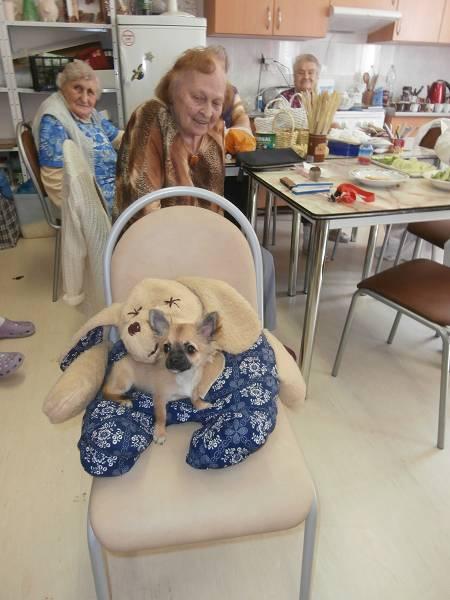 Dopolední aktivizaci jsme měli obzvláštněnou návštěvou fenky Jully. Štěně čivavy přinesla uživatelům do místnosti volnočasových aktivit "sestřička" Julie Dolejšová. Uživalé si fenku rádi pohladili a pochovali. Děkujeme za milou návštěvu!