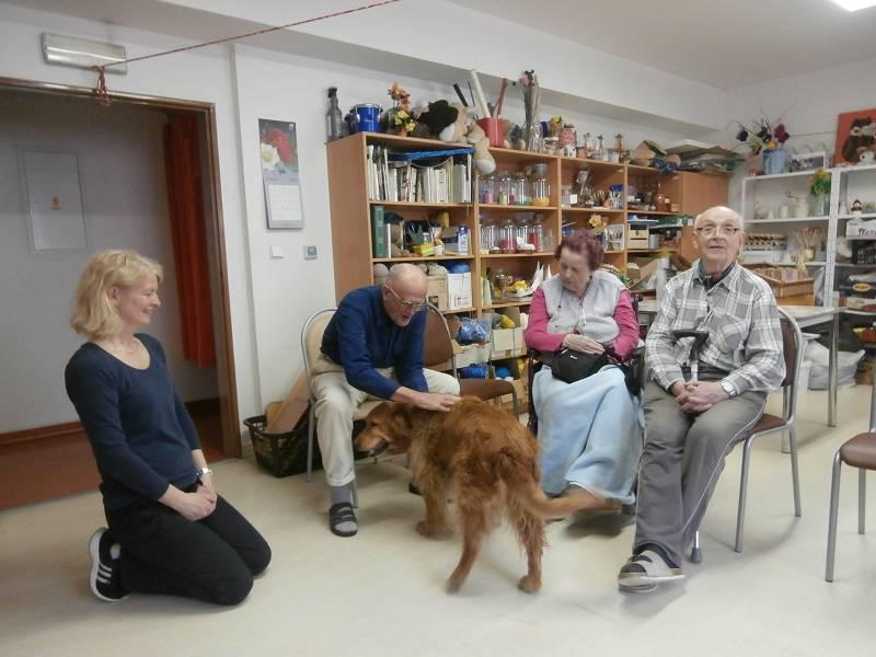 Canisterapie s fenkou Sárou St, 05/10/2017 - 13:15 - St, 05/10/2017 - 14:30 Aktuality a akce, DS Lidická Pravidelná návštěva dobrovolnice canisterapeutky p.Sokolové s fenkou zlatého retrívra Sárou má své stálé příznivce. Každou druhou středu v měsíci se s nimi mohou uživatelé domova potěšit v ,,ergu". Zdeňka Limbergerová, instruktorka soc. péče