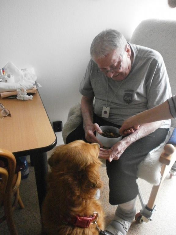 Canisterapie se Sárou Čt, 09/11/2014 - 13:30 Aktuality a akce, DS Rybniční Paní Sokolová a její fenka Sára opět potěšila a rozářila tváře mnohých obyvatel, kteří mají rádi zvířecí mazlíčky.