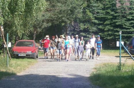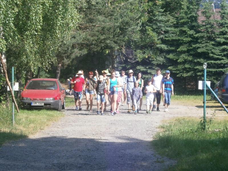 Téměř ve stejnou hodinu vyrazili i turisté. Ovšem ti vyjeli služebními automobily, a dorazili za námi do Sušice vyprovodit nás a popřát nám šťastnou cestu. Poté měli v plánu odjet za kamarády na akci do Dubu u Prachatic. Na neštěstí je však potkala malá nehoda a nuceně se tak museli zdržet ve Strakonicích. Po vyřízení této záležitosti se společně rozhodli pokračovat jiným směrem, a to konkrétně do kempu ve Střelských Hošticích- zde jsme totiž měli zarezervované ubytování- opět nás všechny „Kemp Hoštice“ nechal přenocovat za velmi příznivou cenu. Zde se turisté pohodlně usadili podél řeky, kde byla k vidění krásná přírodní scenérie, mohli se zde koupat či odpočívat ve stínu, vychutnali si zde i vydatný oběd.