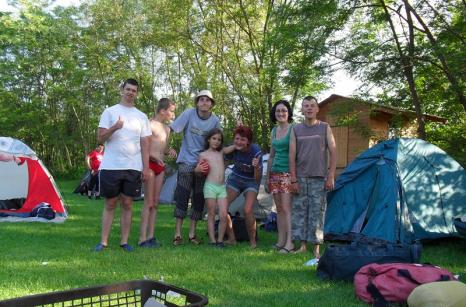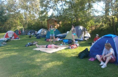 Po společném uvítání turistů i rafťáků, jsme se dali do stavění stanů, vybalování spacáků a všech našich potřebných zavazadel. Pak už se přeci jen přiblížil čas večeří, takže i my, teď již hladoví, se vydali ke stánku a každý si zde objednal to, na co má právě chuť. S plnými žaludky jsme se pak přesunuli ke stanům, zazpívali jsme si s kytarami naše staré známé písničky a hurá spát.