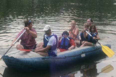 Rafťáci se nalodili, a po řece pokračovali již do Strakonic, s malou přestávkou na oběd v kempu Katovice. I turisté se sbalili a pěkně v klidu se vydali na oběd taktéž do Katovic, kde jsme se společně všichni setkali a poobědvali. Zde jsme nalodili i ty, kteří z nějakého důvodu nejeli na raftu již první den. Všichni uživatelé tedy měli možnost vyzkoušet si plavbu na raftu.