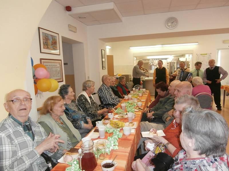 Přijede kapela Osečanka. To je pozvání k účasti, na které každý slyší. Pánové z Oseka umí totiž udělat svými písničkami ohromnou náladu. Do domova pro seniory v Lidické jezdí pravidelně řadu let a tak je všichni znají a těší se na ně. Pozvání přijali i senioři z DS v Rybniční ul. Zaměstnanci připravili pro všechny bohaté občerstvení. V kuchyni upekli ke kávě výbornou buchtu s nugátovým krémem, p.vedoucí domova domácí slané pečivo. Nechyběly chlebíčky a točené pivo. V mezihrách se pro zpestření hráli vědomostní i ,,sportovní´´ soutěže s odměnou. Senioři hodovali, zpívali i tančili. Zkrátka se dobře bavili.