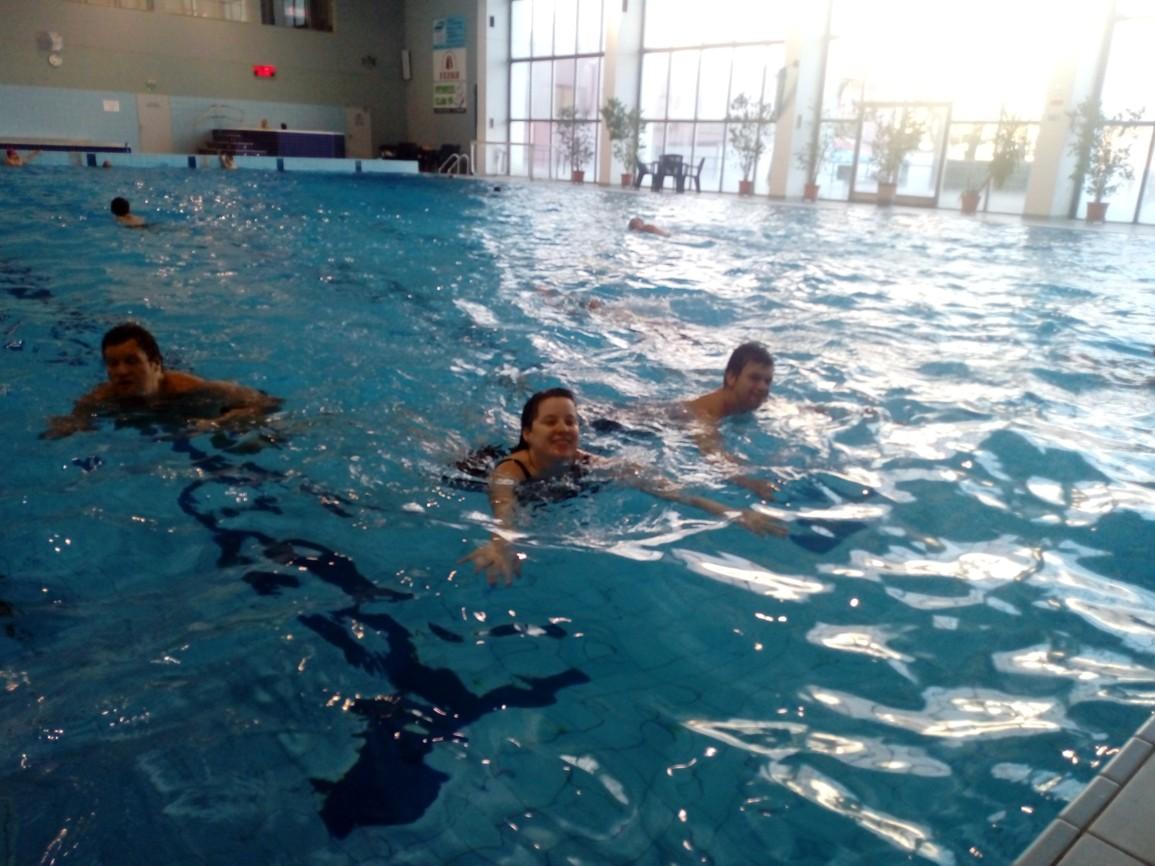 Plavání je jednou z nejlepších aktivit pro naše zdraví. Pozitivně působí na naši fyzičku, ale i na psychiku, protože bezprostřední kontakt s vodou zklidňuje náš duševní stav ohrožovaný tolika nežádoucími civilizačními vlivy. Plavat může opravdu téměř každý, dokonce i lidé s omezenými pohybovými možnostmi, protože voda zmírní vliv gravitace na naše těla, což odlehčuje páteři a celému pohybovému aparátu. Rozsáhlý pohyb horních i dolních končetin působí příznivě také na rozvoj kloubní pohyblivosti. Proto také pravidelně navštěvujeme plavecký bazén ve Strakonicích, kde naši klienti využívají kondiční plavání pořádané denním stacionářem.