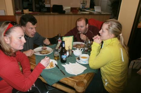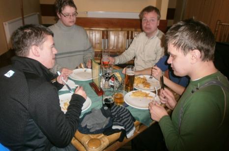 Naše skupina se rozdělila na dvě skupinky. Rekreační lyžaři putovali směrem na Zlatou Studnu. Jeli podle svých sil a zvolili si tempo, které jim vyhovovalo. Lyžaři z první skupiny zvládly trasu téměř ke Kvildě. Zpět se vraceli přes hřebenovku nad Zlatou Studnou směrem na Zhůří. Během zpáteční cesty na Pláně jsme se obě skupiny sešly na občerstvení v hotelu Olympia, kde si každý dal něco podle své chuti. Poslední úsek z Churáňova na Pláně jsme jeli za hustého sněžení a větru. Počasí bylo chladné, ale ideální sněhové podmínky a dobře ,, namazané“ lyže nám zvedlo náladu. Zdá se, že se konečně na Šumavu vrátila ta pravá zima s dostatkem sněhu.