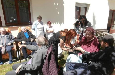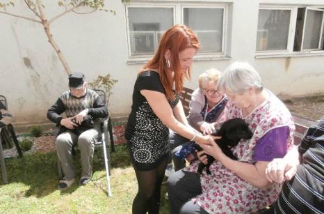 začne v domově velký ruch. Někdo si přijde sám , někoho podle zájmu zaměstnanci doprovodí z pokoje. Štěňátka vnesou do domova spoustu radosti. Děkujeme p. Kamilovi, který za námi do domova s tímto skvělým nápadem-mazlení se štěňátky-přijel až z Husince. Poslal nám pak zprávu :,, Bylo to u vás super. Jste tam dobrá parta...Děkuji."