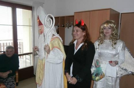 Mikulášská nadílka Po, 12/05/2016 - 13:30 - Po, 12/05/2016 - 15:15 Aktuality a akce, DS Lidická Již tradičně do našeho domova zavítal Mikuláš s andělem a čertem, kteří všechny uživatele obdarovali mikulášskou nadílkou. Klečková Martina - instruktorka sociální péče