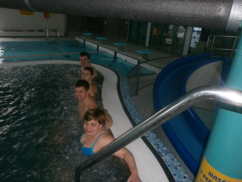 Dne 6. 12. 2013 jsme se vypravili služebním autem do Horažďovic na plavecký bazén. Bazén nabízí mnoho sportovních a relaxačních aktivit. Je možnost využít perličkovou lázeň, divokou řeku, kulový vodotrysk, protiproud a kulový rošt, chrlič vody, vodní hřib a v neposlední řadě vodní a vzduchová lůžka s masážními tryskami. Večer je možnost využít saunový svět.
