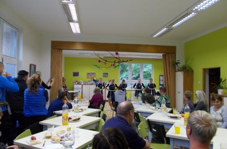 Dnes jsme si užili pohodové odpoledne při společném grilování. Denní stacionář navštívili uživatelé se svými rodinami, klienti Domova pro seniory v Lidické ulici ve Strakonicích, dobrovolníci a přátelé DST.Posezení nám zpříjemnily svým tanečním vystoupením děvčata z DDM Strakonice. Naši uživatelé zazpívali známé písničky v doprovodu kytary a všichni zúčastnění se zapojili do hry na BOOMWHACKERS.