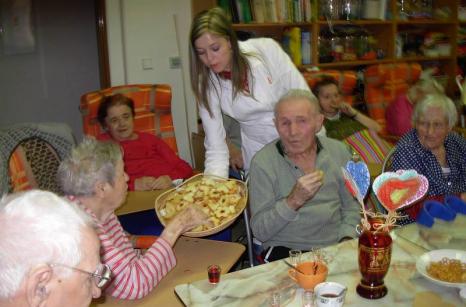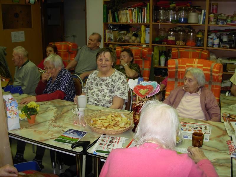 V místnosti volnočasových aktivit jsme dnes oslavili Mezinárodní den žen. Každý v domově dostal linecké cukroví, které jsme včera v "ergodílně" napekli. Ani pánové nezapomněli a přišli popřát ženám k svátku a zarecitovat jim básničky.