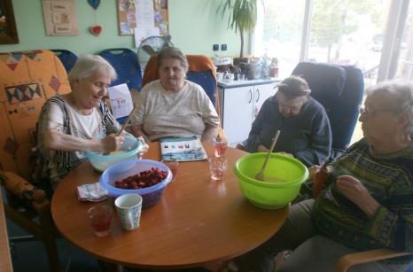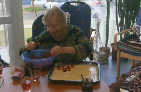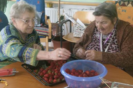 Pečení buchty s jahodami St, 06/17/2015 - 09:00 Aktuality a akce, DS Rybniční Vlastní úrodu jahod jsme využili společně s obyvateli upečením jahodové buchty.
