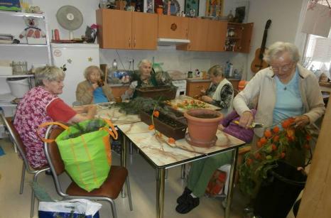Podzimní dekorace - truhlíky Čt, 11/06/2014 - 09:00 - Čt, 11/06/2014 - 11:00 Aktuality a akce, DS Lidická V místnosti volnočasových aktivit jsme vytvářeli podzimní truhlíky. Naaranžované truhlíky budou zdobit nádvoří i vstup domova. Klečková Martina - instruktorka sociální péče