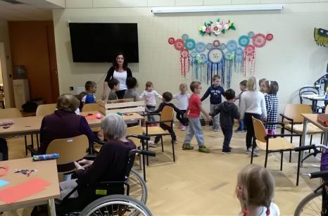 V dopoledních hodinách přišly děti z MŠ A. B. Svojsíka potěšit obyvatele našeho domova. Hudební vystoupení dětí vykouzlilo dobrou náladu. Při společném tvoření ježků a housenek z listí si děti a senioři hodně povídali, dílko jim šlo od ruky a z výrobků měli všichni velikou radost. Moc děkujeme dětem a paním učitelkám za příjemně strávené dopoledne a těšíme se brzy na shledanou.