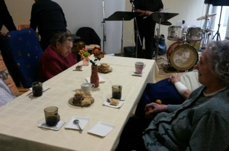 Pan Pavelka a spol. nám okořenili jinak všední dopoledne veselými a zvučný lidovými písněmi, které se nesly celým domovem. Dobrou náladu doladila horká káva a moučník, vlastnoručně upečený k této příležitosti. Děkujeme muzikantům a těšíme se na viděnou na Silvestra.