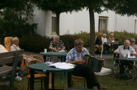 Posezení s heligonkou Čt, 08/08/2013 - 14:00 Aktuality a akce, DS Rybniční Posezení v zahradě nám zpříjemnilo vystoupení Jaroslava Pašavy s heligonkou.