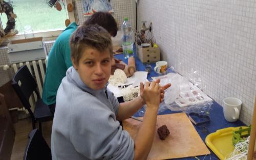 Mezi oblíbené činnosti našich uživatelů patří práce s hlínou. Nejenže přímý kontakt s hlínou má vysoký terapeutický účinek a podporuje rozvoj jemné motoriky, ale touto činností vznikají překrásné výrobky, ze kterých vyzařuje duše našich autorů. Uživatelé se podílejí jak na návrzích výrobků, tak na celém jejich zpracování, které obsahuje několik kroků – přípravu hlíny, modelování výrobku, práci s glazurami a barvou, modelování na hrnčířském kruhu a konečný výpal. Z rukou našich uživatelů vznikají dekorativní a upomínkové předměty, ozdoby, sošky, hrnečky, vázy a také medaile na sportovní akce pořádané stacionářem.