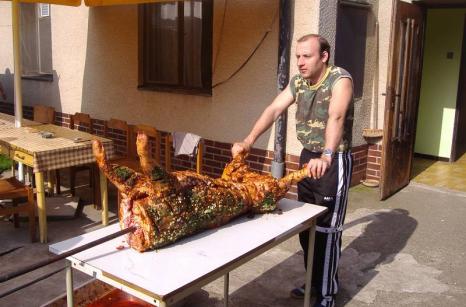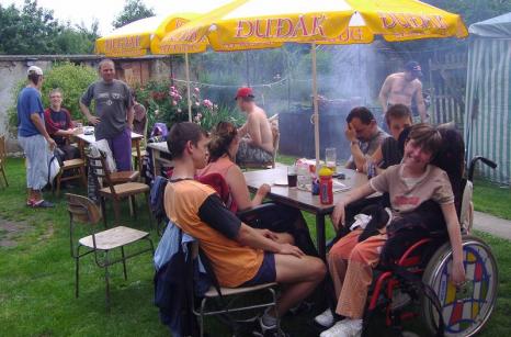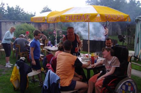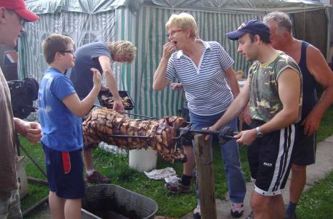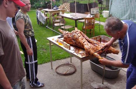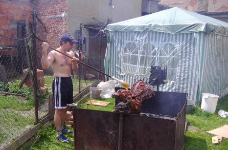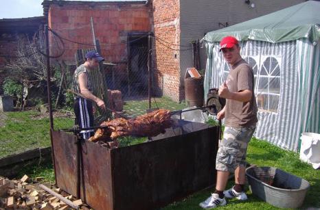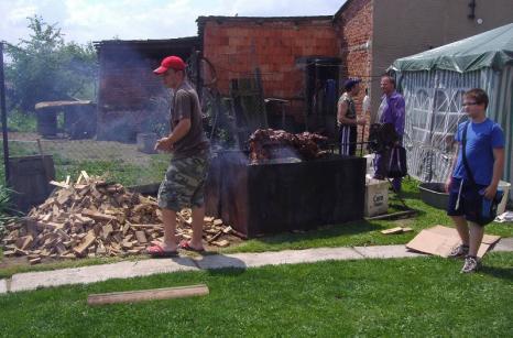 V pátek 25.6.2010 si uživatelé Denního stacionáře, rodiče, známí, přátelé, praktikanti a hosté již po 13. dali dostaveníčko v nedalekých Modlešovicích. Od rána uživatelé Denního stacionáře na rožni opékali prasátko /v letošním roce prasátko vážilo 42 kg/. Tato tradiční červnová akce probíhala v hospůdce p.Králíka v Modlešovicích. Při opékání nám přálo i počasí. Jen odpoledne a v podvečer se přes Modlešovice přehnala přeháňka /chvilkově se objevila i bouřka/.