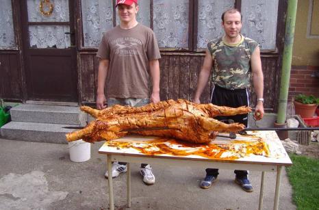 Před nepřízní počasí jsme se ukryli pod velký stan, prasátko jsme překryli podomácky vyrobenou stříškou a pokračovali nerušeně v zábavě. Postupně během dne se v hospůdce vystřídalo zhruba 60 osob, které si společně nejen popovídali, ale také se zasmáli a zazpívali si při doprovodu kytary. Všichni ochutnali alespoň kousek „vepřového“. Pochvalovali si nejen setkání s ostatními kamarády, které mnohdy nevidí i celý rok, ale také výborně připravené a opečené prasátko. Už teď se těšíme na další ročník opékání prasátka. Bude se znovu odehrávat v Modlešovicích?