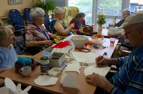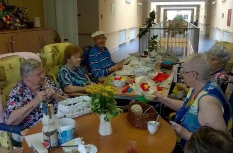 Rukodělné činnosti v našem domově se konají nejen na společenském sále, ale také v patře na modrém oddělení... Důležité je, při společném setkávání, mít příjemný prostor, kde je možnost si popovídat, vidět své sousedy, zkusit se pobavit a hlavně odejít s dobrou náladou a těšit se na příště.