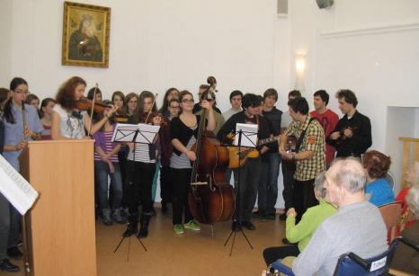 Ve čvrtek 31.1.2013 dopoledne měli možnost uživatelé Domova pro seniory v Lidické ulici na živo vyslechnout sborové skladby v podání známého pěveckého sboru místního gymnázia pod vedením sbormistryně Marcely Míkové a keltské hudby ZUŠ ve Strakonicích pod vedením Pavla Reitmaiera.