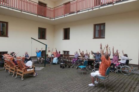 Skupinové cvičení Pá, 07/22/2016 - 09:30 - Pá, 07/22/2016 - 10:15 Aktuality a akce, DS Lidická Pravidelné páteční cvičení s panem fyzioterapeutem Pavlem Vilímem jsme tentokrát měli na nádvoří domova. Klečková Martina - instruktorka sociální péče