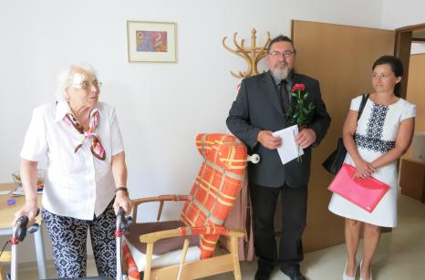 Jubilantům v Domově pro seniory v Lidické ulici v úterý 6. 6. osobně popřál k narozeninám starosta města Strakonice Mgr. Břetislav Hrdlička. Dalšími gratulanty byli zastupitel města Josef Zoch, ředitelka Městského ústavu sociálních služeb Mgr. Dagmar Prokopiusová, vedoucí Domova pro seniory v Lidické ulici Mgr. Lenka Kratochvílová a pracovnice Infocentra pro seniory Mgr. Marie Žiláková. Dopoledne hudbou zpříjemnili manželé Ivana a Vladimír Váchovi společně s tatínkem panem Miroslavem Lukešem. Některé písničky si s nimi jubilanti společně zazpívali. Pro jubilanty byly připraveny dárkové poukazy, občerstvení a kytička. Věříme, že jsme všem udělali velkou radost.