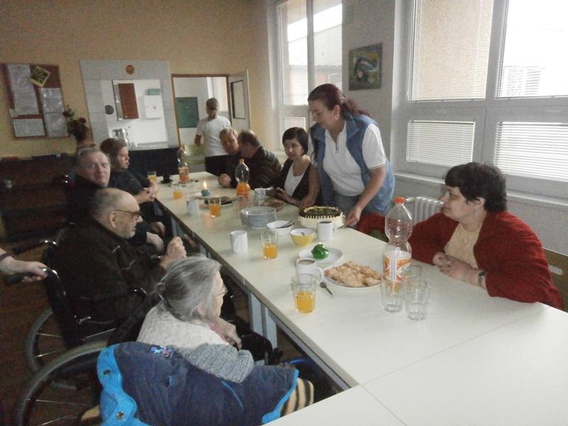 Dne 13.11.2015 se uskutečnilo v Denním stacionáři další setkání mentálně postižených uživatelů a seniorů z Domova pro seniory Lidická. Naši uživatelé si připravili vlastními silami sladké pohoštění. Servírovali zákusky, chutný svařák, čaj a kávu. Při společném posezení si všichni společně poslechli Moravanku a příjemně si popovídali o činnostech a aktivitách, které vykonávají. Uživatelé DST se pochlubili diplomy z turnajů, závodů a různých her. Senioři během setkání měli možnost si prohlédnout výtvarný atelier, keramickou dílnu, učebnu i posilovnu. Klienti se pochlubili vlastnoručně vyrobenými výrobky z atelierů a dílny. Na závěr seniorům předali drobné dárečky s přáním pevného zdraví a opětovného setkání. Společné setkání obohatilo nejen naše uživatele, kteří vyslechli různé příběhy starých, ale velmi milých a moudrých lidí, ale i seniory, kteří měli možnost strávit pár hodin v jiném prostředí a popovídat si s mladými lidmi a podělit se o jejich radosti a příběhy.