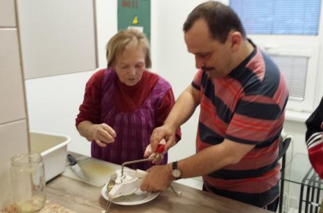 Staročeské vaření s dobrovolnicí Růženkou St, 01/17/2018 - 07:30 Aktuality a akce, denní stacionář Paní Růženka Koňáková si pro naše uživatele připravila staročeský recept na zelné placky. Uživatelé se s chutí zapojili při přípravě této pochutiny. Placky všem velmi chutnaly. Za DST Chocholatá Andrea