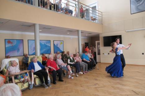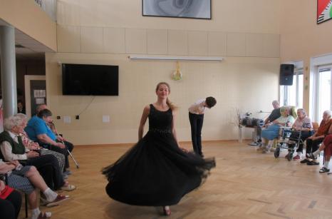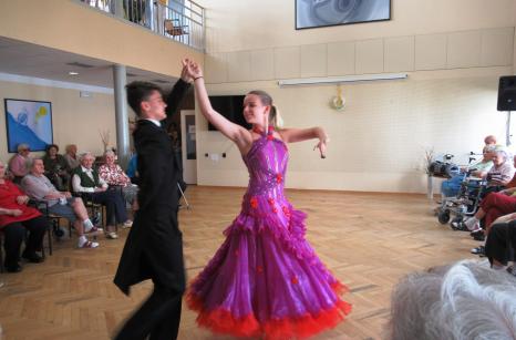 Taneční vystoupení pod vedením manželů Motlových se v domově těší velké oblibě. Ani tentokrát tomu nebylo jinak. Krásné róby, elegantní provedení tance, hudba laděná do mládí našich uživatelů - bylo se na co dívat, nechyběly slzy dojetí a nadšený potlesk. Děkujeme tanečníkům "Čtyřlístku" za kulturní zážitek a také za čas a energii, kterou nezištně věnují našemu domovu.