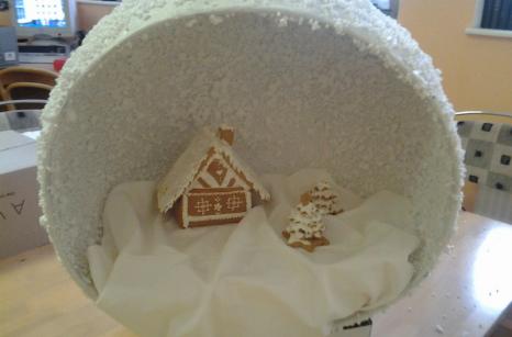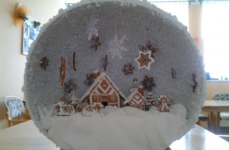My jsme se také zúčastnili této soutěže. Společně jsem vytvořili sněhovou kouli, uvnitř které byla zasněžená vesnička z perníku.