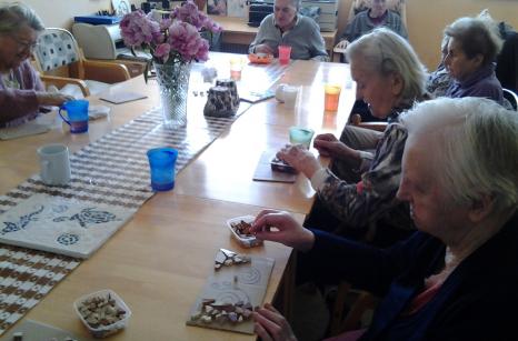 Vyrábíme mozaiku Čt, 06/25/2015 - 11:00 Aktuality a akce, DZR Rybniční Při vyrábění mozaiky se většinou zapojí téměř všichni zúčastnění. Tato aktivita naše obyvatele baví a vždy mají radost z hezkých výrobků, které lze z mozaiky vyrobit.