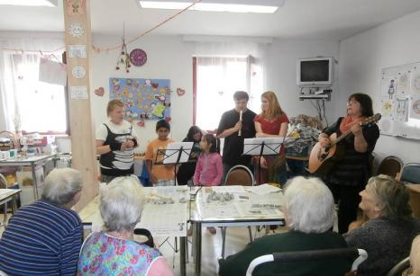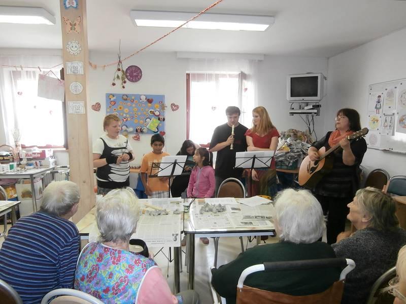 Na návštěvu dětí z Dětského domova z Písku se uživatelé velmi těšili. Děti si pro nás připravily krásné vystoupení - společně zazpívaly, zahrály na hudební nástroje a přednesly básničky. My jsme si pro děti připravili za milé odpoledne sladkou odměnu. Všem se velmi líbilo vystoupení i popovídání na závěr.