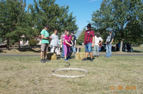 Ve středu 12.9.2018 jsme přijali pozvání z Domova Petra Mačkov, který pořádal Westernový den. Čekali na nás soutěže ve sběru vajíček, házení podkovou, vyvazování ohrady, slalom s koštětem a trefa bičem. Naši soutěžící se umístili na 3-4 místě a získali sladkou odměnu. Dívky z Mačkova předvedly výcvik poníků. Profesionální kovboj pan Procházka nám ukázal koně plemene Norik. Předvedl poslušnost a trpělivost svého koně, akrobatické kousky v sedle a práci s bičem. Závěrem akce se všichni těšili na guláš. Krásné odpoledne si všichni moc užili.