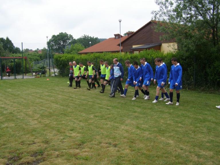 Nejprve se proti sobě postavili „věční soupeři, ale hlavně „kámoši“ – Strakonice versus Osek. V náročném utkání, které se hrálo 2 x 30 minut se v úvodu dostali do vedení domácí Osečáci. Branku vsítil Jíří KUČERA. Strakoničtí však kontrovali a po krásné kombinaci „přihrej a běž“ vsítil vyrovnávací branku Josef HODÁNEK. Poté domácí fotbalisté kopali penaltu /za ruku v pokutovém území/, kterou bravurně a s přehledem proměnil domácí Ivan KECÍK 2:1. Vyrovnání se dostavilo těsně v závěru prvního poločasu, kdy znovu zafungovala spolupráce Ježek – Hodánek a posledně jmenovaný vyrovnal na 2:2. Následovala 15 minutová přestávka. Po přestávce si domácí fotbalisté vytvořili enormní tlak. Výsledkem jejich snahy byli dvě krásné branky Luboše ŠVECE. V této chvíli svítilo na ukazateli skóre 4:2 pro domácí. Do konce utkání scházelo zhruba 12 minut. Poté se hra přelévala ze strany na stranu. Osečtí dvakrát po sobě neuhlídali neúnavného Josefa HODÁNKA a ten 6 minut před koncem svým 4 gólem zkorigoval výsledek na 4:4. A bylo vyrovnáno. O vítězství Oseka se v závěru tohoto nelítostného souboje postarali dva domácí borci – Ivan Kecík a Luboš Švec, kteří po individuálních akcích rozhodli dramatické utkání a přispěli tak k tomu, že domácí tým z Oseka byl v tento den úspěšnější a zvítězil 6:4.