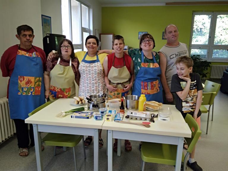 14.6.2019 jsme vyhlásili soutěž pro všechny naše kuchaře. V pátečním programu máme mimo jiných aktivit i vaření. Při této činnosti se naši ,,kuchaři“ učí základním dovednostem v pečení a vaření (porozumění receptu, příprava surovin: rozdělování žloutků od bílků, krájení, vážení a měření surovin). Protože několik týdnů trénovali přípravu pomazánek, rozhodli jsme se vyzkoušet, kdo je z našich kuchařů největší MasterChef. Soutěžící si vybrali pomazánku a vyhledali nejvhodnější recept. Nahlášené byly 3 pomazánky – rybí, vajíčková, česneková. Každý tým měl 2 kuchaře a ti měli za úkol vybrat z připravených surovin ty potraviny, které budou do svého receptu potřebovat. 1. úkol splnili všichni skvěle a do pomazánky dali správné ingredience. 2. úkol bylo servírování pomazánky – zde již někteří sázeli na chuť, a proto šla estetika stranou. 3. úkolem byla poživatelnost pomazánek a zde taktéž jako v 1. úkolu všichni prošli a komise přežila bez následných obtíží. Nakonec bylo velmi těžké vyhlásit nejlepší kuchaře, protože se všem pomazánky povedly.