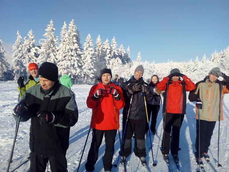 Dne 9. 1. 2018 uživatelé denního stacionáře po roce vyrazili na Šumavu věnovat se běžeckému lyžování. Koncem roku 2017 byla velmi bohatá sněhová nabídka, kterou si všichni příznivci zimních sportů chválili. Bohužel od té doby sněhu moc nepřibylo, proto kvalita sněhu nebyla dobrá. Na přemrzlý sníh firm nebylo možné dobře namazat, a proto jsme byli nuceni zvolit k této situaci vhodné převýšení a trasu. Zaparkovali jsme na Pláních a poté vyjeli směrem na ,,Zlatou studnu“. Během cesty jsme byli nuceni se vyhýbat velkému množství lagun a potůčků. Na závěr jsme se shodli, že to, ale byla velice pěkná lyžařsko – turistická akce, při které svítilo sluníčko. Mezi běžkaři panovala veselá atmosféra zpestřená terénním a překážkovým během. Na závěr všichni sportovci poobědvali v češtické hospůdce, kde si každý pochutnal na oblíbeném jídle.