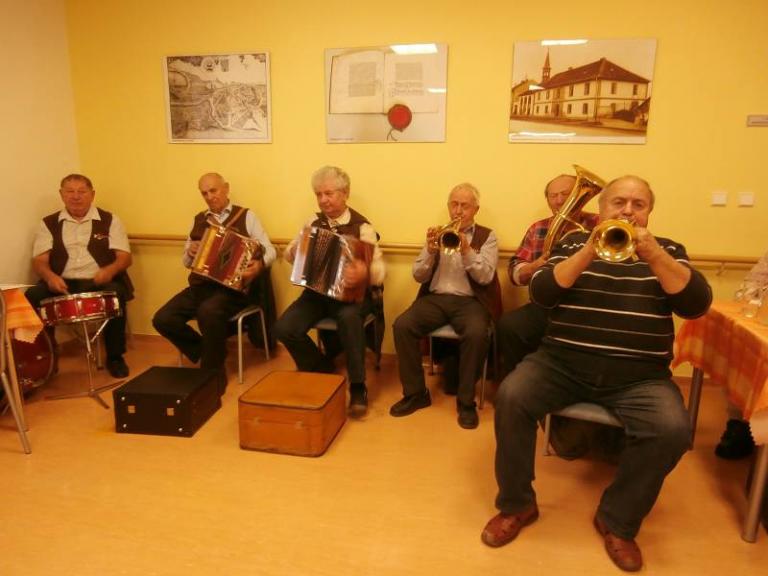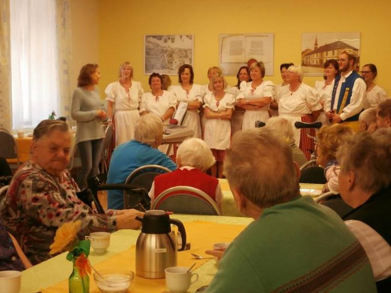 Pěvecký sbor pod vedením paní Chocholové potěšil svým vystoupením obyvatele v DS. Na závěr zahráli a zazpívali písničky na přání. Uživatelé poděkovali účinkujícím velkým potleskem.