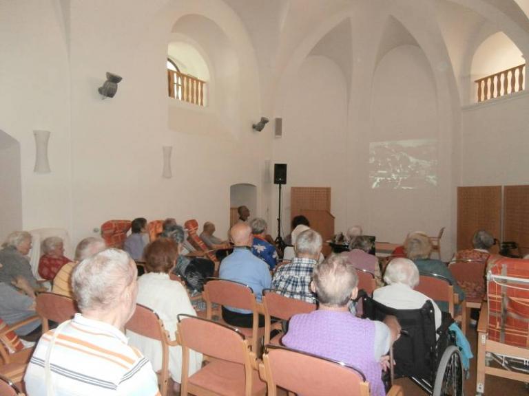 Historická přednáška p. Landsingera s promítáním byla zajímavým zpestřením tohoto dne. Senioři poslouchali se zaujetím a vybavovali si své mládí. Jak prohlásila jedna z uživatelek: „Byla to všechno pravda, tak si to pamatuji...".