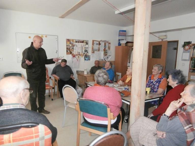 Ve víceúčelovém sále domova přednášel a promítal zajímavé dokumentace vykopávek ve Strakonicích archeolog p. V.Král.