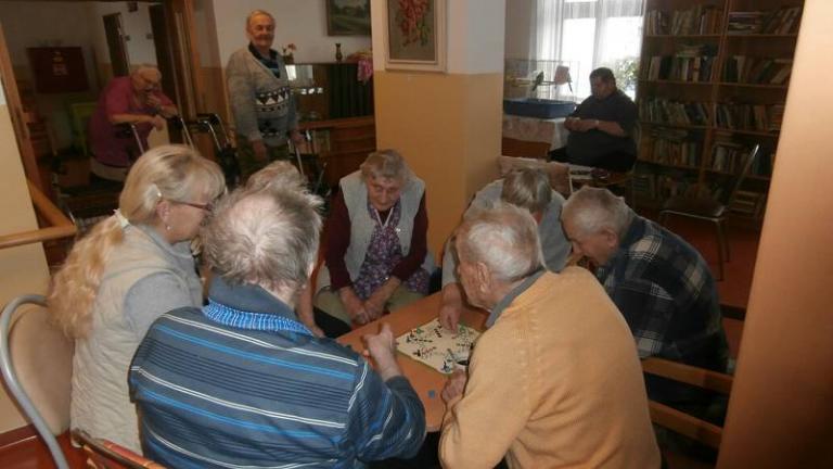 Ve 3. patře jsme s uživateli hráli stolní hru "Člověče, nezlob se!" ve vzpomínkovém koutku, kde nám dělali společnost andulky a korely. Zvítězil pan Doležal Rudolf. Gratulujeme!