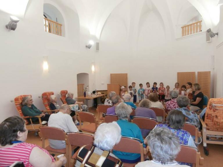 Na nádvoří domova zahráli žáci Základní umělecké školy Strakonice pod vedením pana učitele Zetka. Uživatelé seděli na nádvoří domova a na balkonech jednotlivých pater a poslouchali krásné skladby, které se linuly z nádvoří celým domovem.