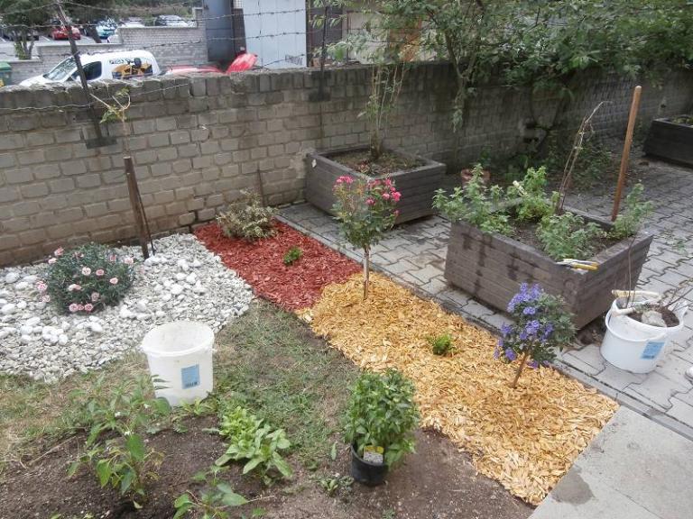 V rámci projektu Blue Sky Involve jsme získlali na revitalizaci zahrady 500 USD, za které jsme nakoupili květiny, okrasné keře, truhlíky, květináče, okrasné kamínky a kůru. Společně se zaměstnanci JC Fabrics Strakonice pod vedení Hany Vojtové jsme zahrádku rozšířili a upravili.