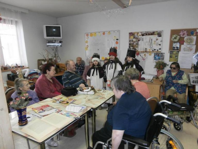 Do domova přišly dvě výpravy Tří králů. Děti z mateřské školy Lidická a druhá z Oblastní charity. V místnosti volnočasových aktivit a na jednotlivých patrech domova zazpívaly písničku "My tři králové jdeme k vám" a předaly kalendáříky na rok 2016. Vystoupení dětí se všem velice líbilo.